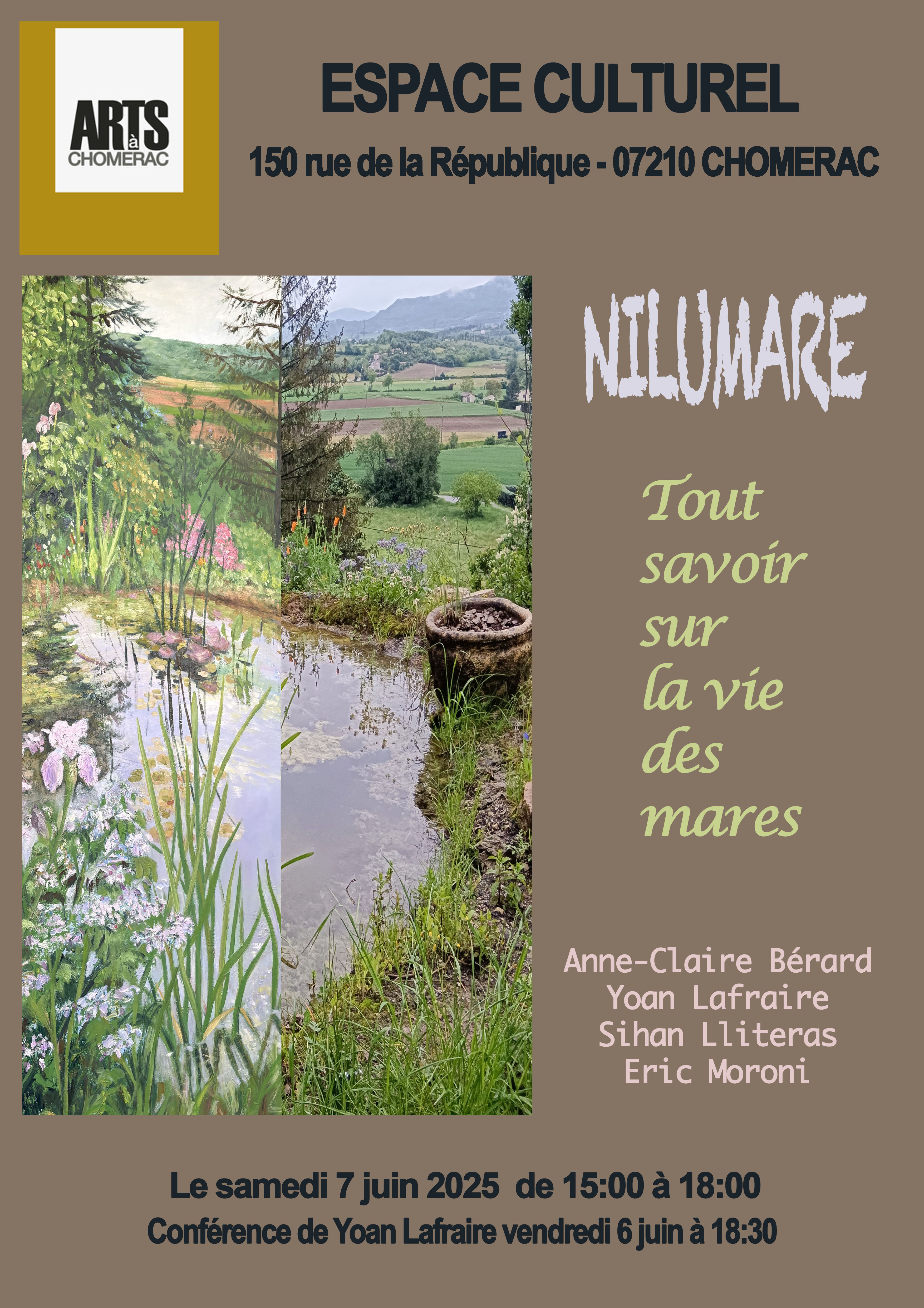 Découvrez les enjeux environnementaux à la conférence Nilumare à Chomérac ! Tout savoir sur les mares. Conférence donnée par Yoan Lafraire. Un évènement culturel à ne pas manquer.