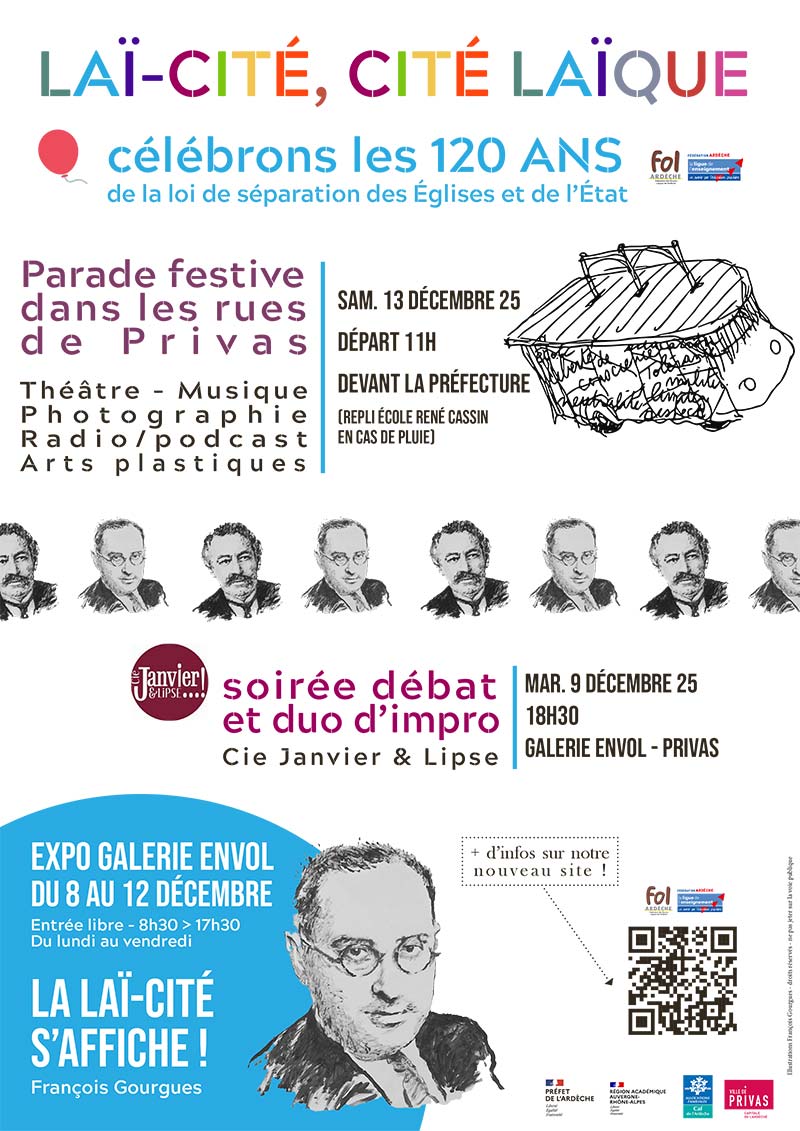 A l’occasion de la semaine de la laïcité et plus précisément de l’anniversaire des 120 ans de la loi de séparation des Églises et de l’État, François Gourgues nous présente une série de 12 dessins et messages de grands penseurs.
