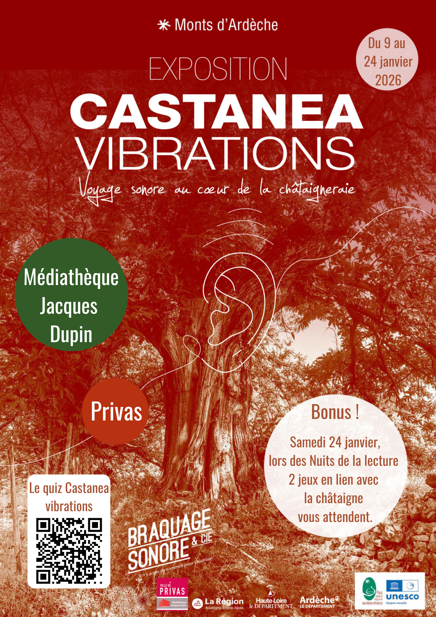 Exposition et documentaire sonore gracieusement prêtés par le Parc Naturel Régional des Monts d'Ardèche.