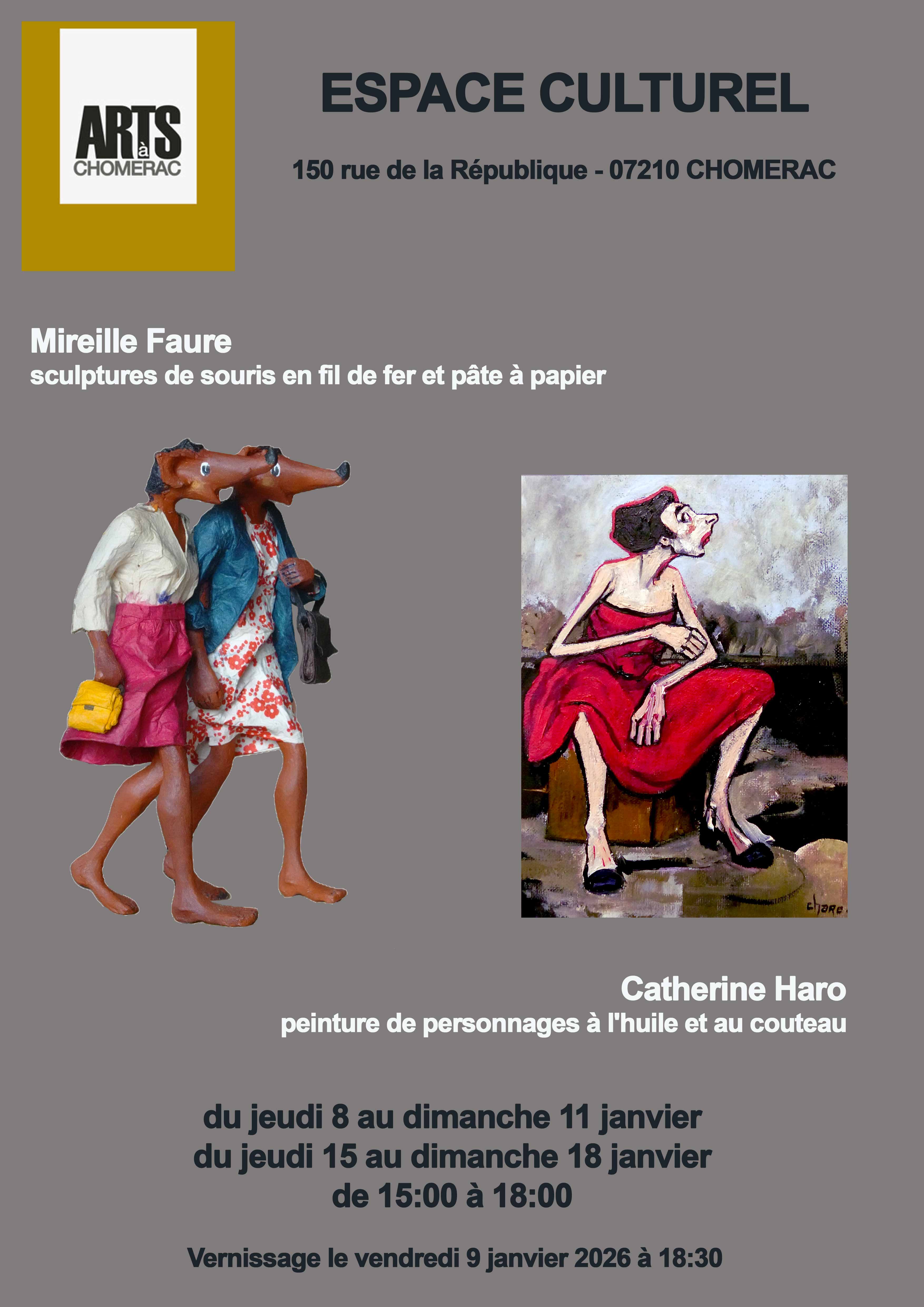 Du 08/01 au 18/01/2026 le jeudi, vendredi et les week-ends de 15h à 18h. Fermé le lundi, mardi et mercredi.
