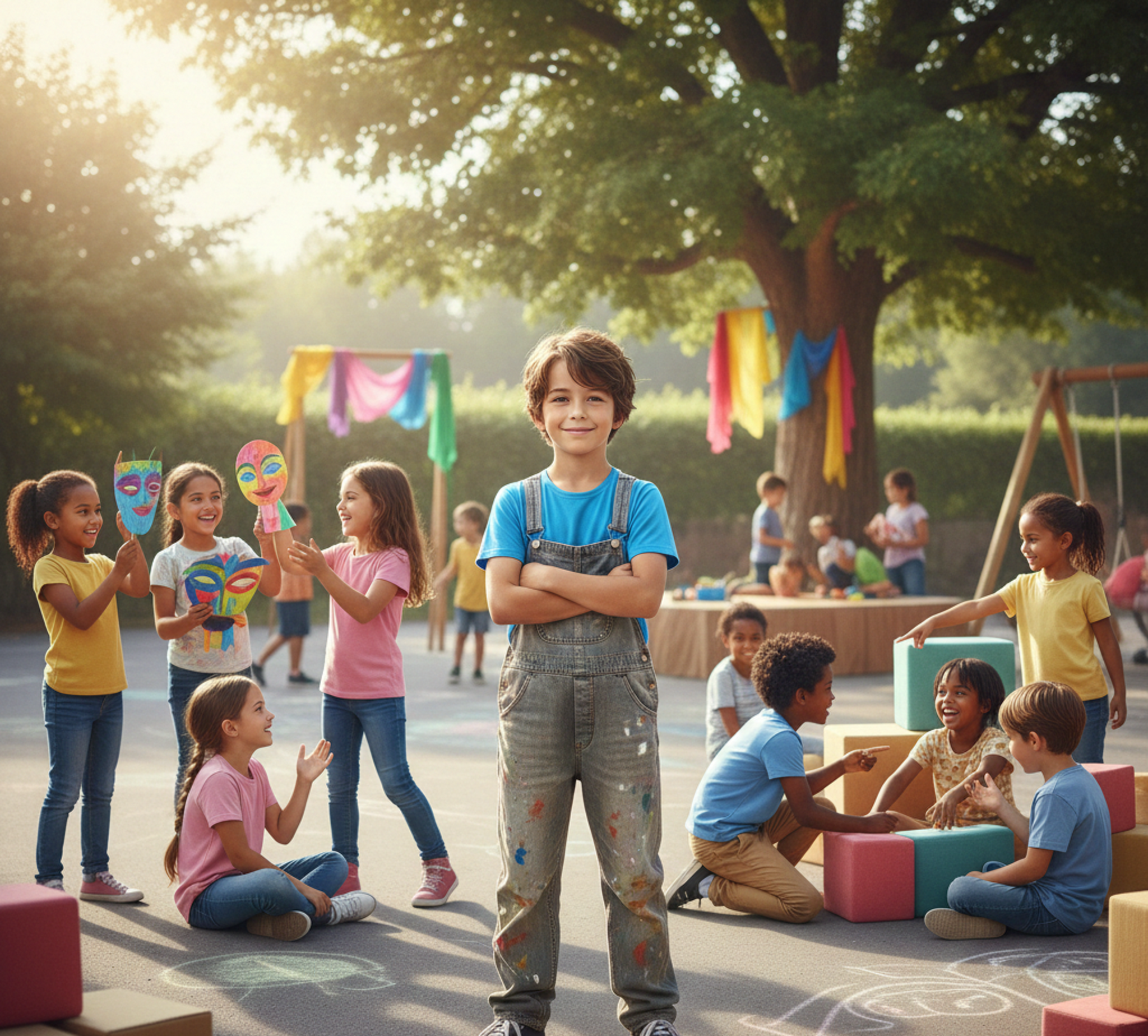 Travail ludique et artistique (création manuelle et théâtre) pour les enfants de primaire, afin de travailler sur la confiance en soi, la reconnaissance, l'affirmation de ses limite, et la capacité d'auto-défense (répartie bienveillante).
