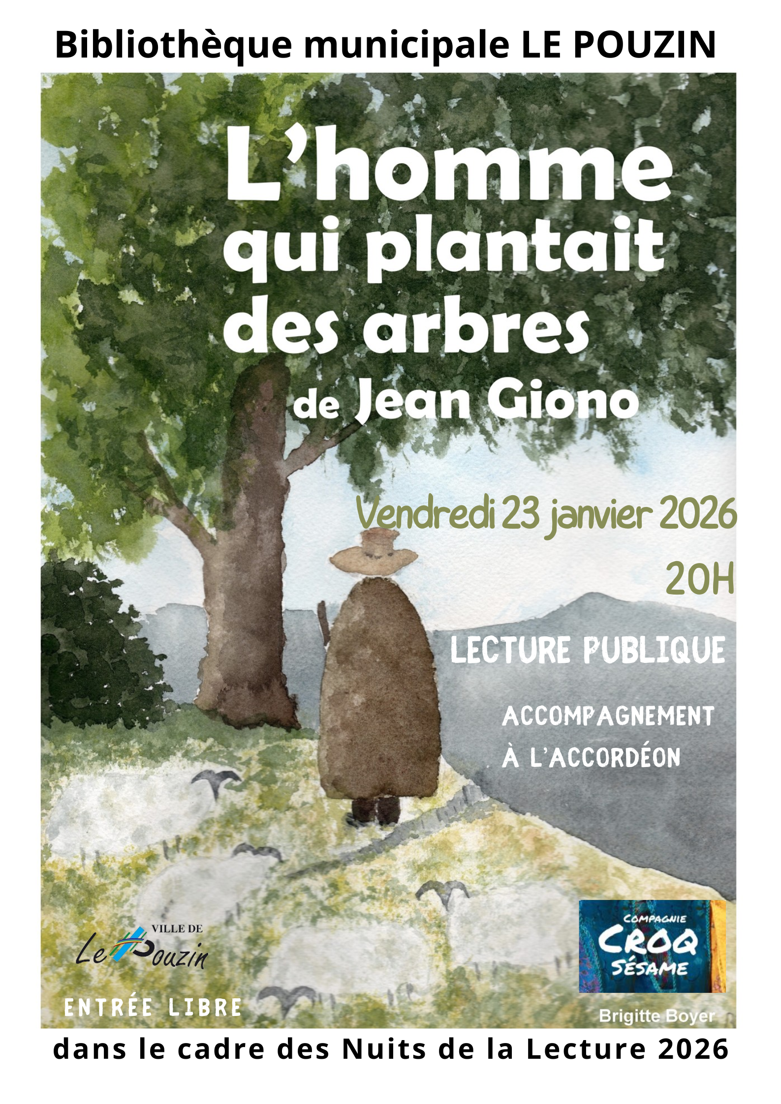 Lecture du roman L'homme qui plantait des arbres de Jean Giono, accompagné de morceaux d'accordéon.Public ados/adultes.