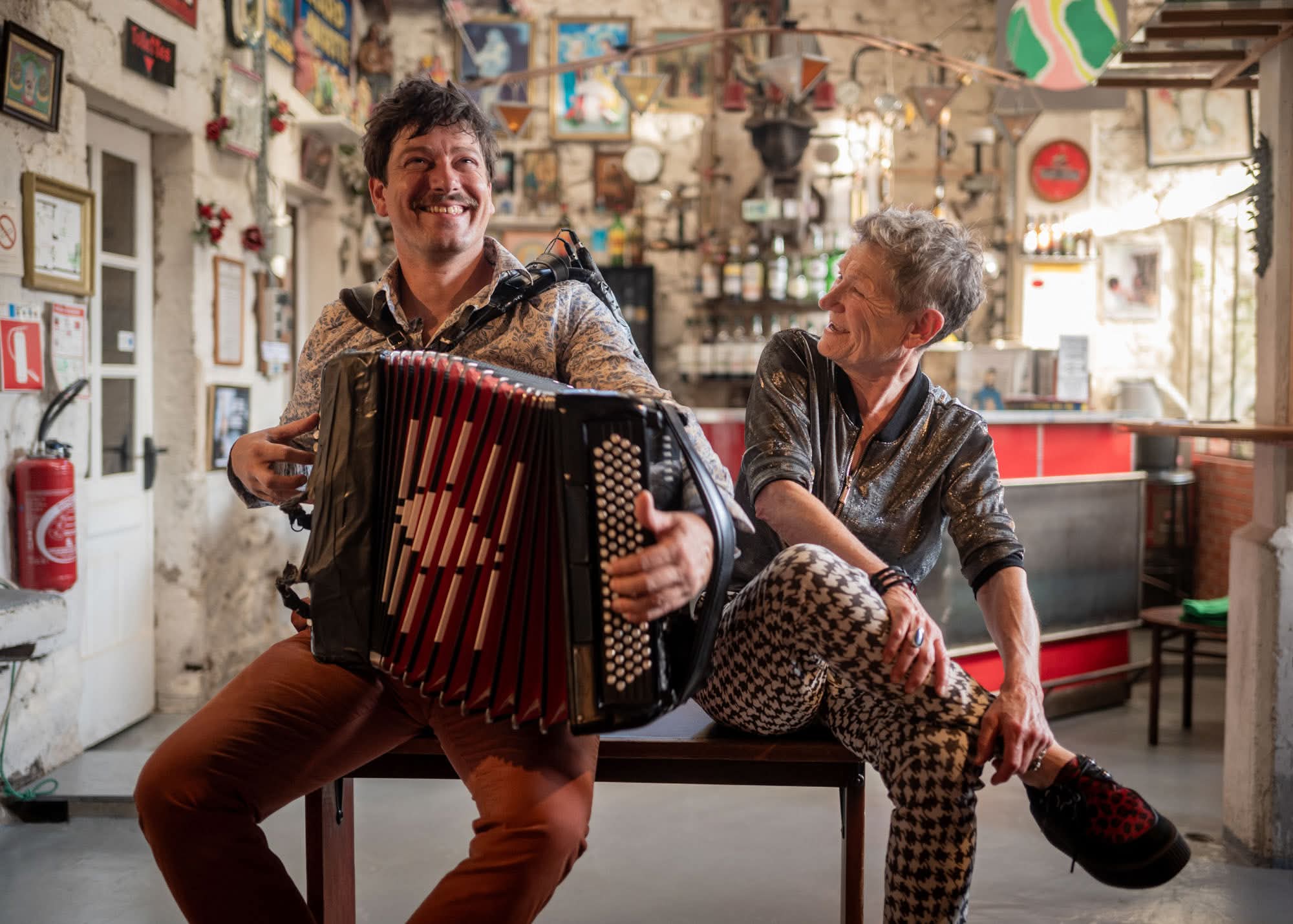 Claudine Lebègue, rockeuse des faubourgs, figure de la chanson de traverse, et Pierre Luquet de La Rue Ketanou, 2 voix, 1 accordéon, 2 tempéraments bien trempés et forts en calcium. Leur rencontre remonte à 2005, marquée par une admiration réciproque.