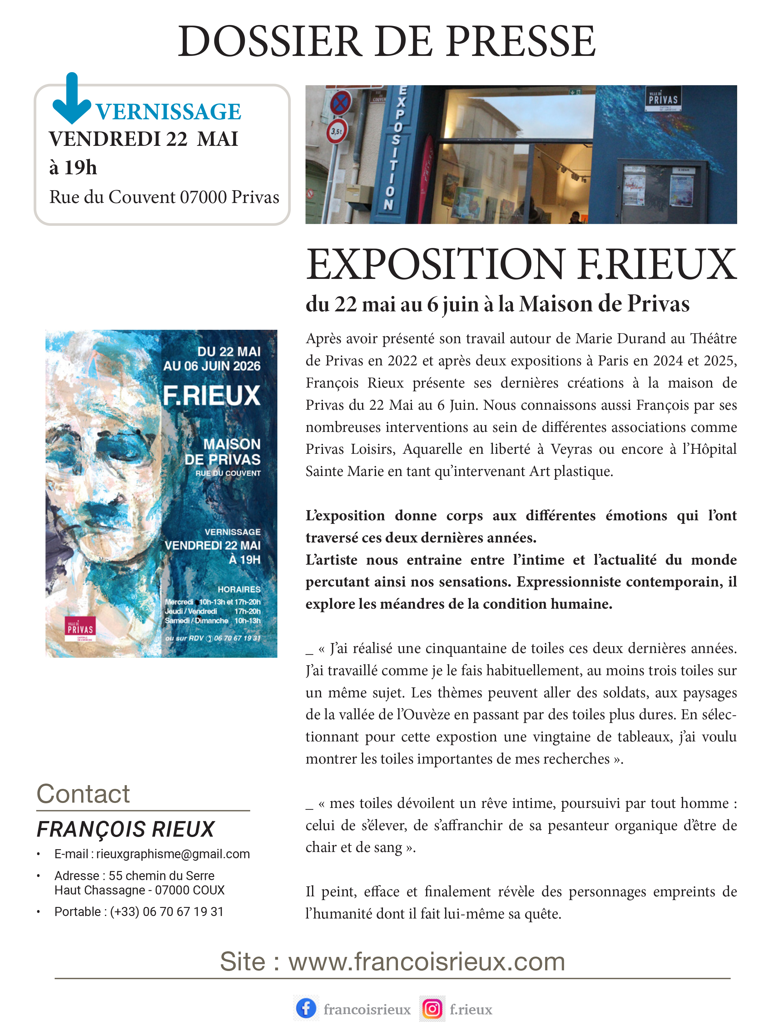 L'artiste local François Rieux revient exposer à la Maison de Privas. L’exposition donne corps aux différentes émotions qui l’onttraversé ces deux dernières années.