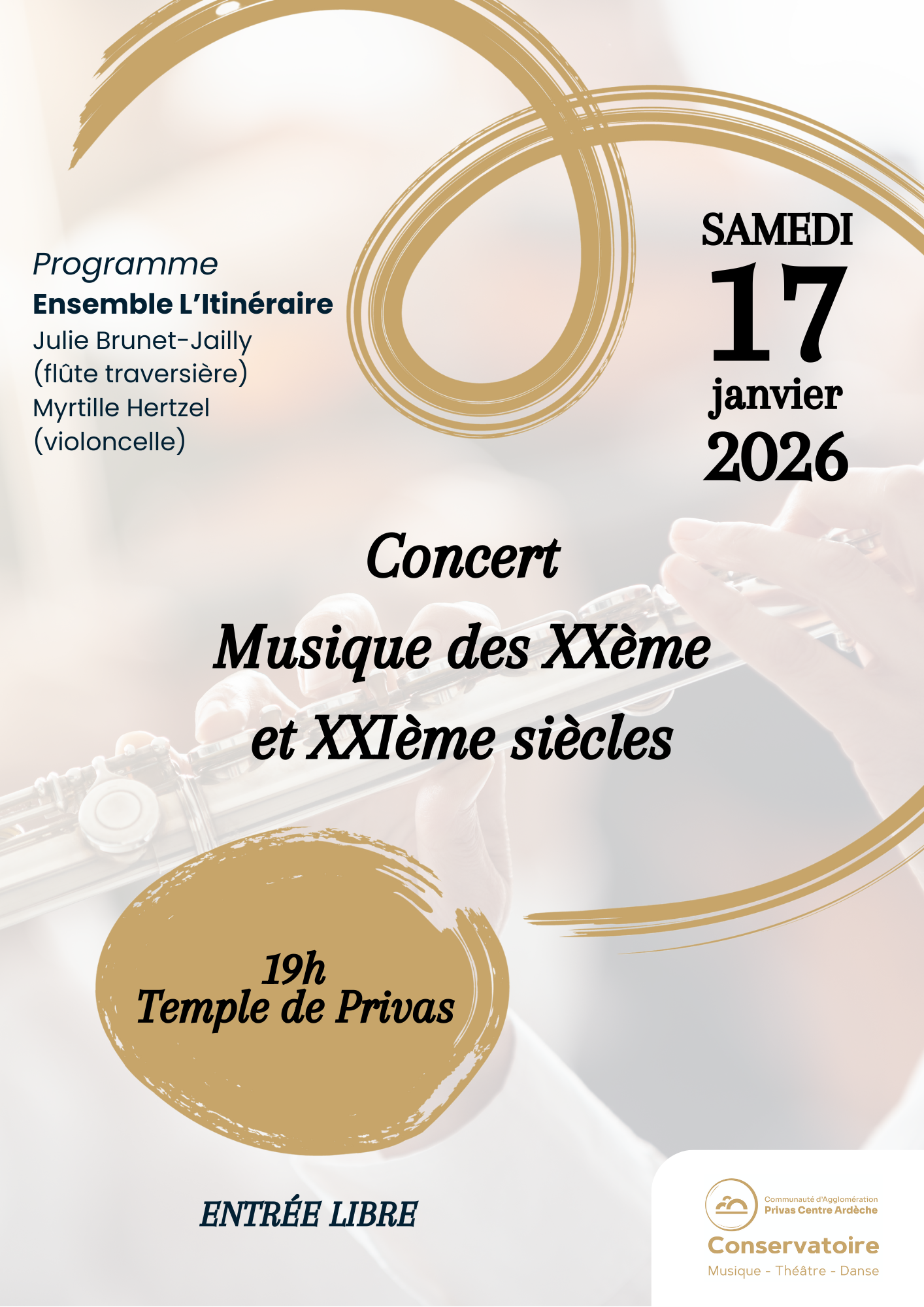 Les prochains concerts du Conservatoire pour le mois de janvier 2026, à noter d’ores et déjà dans vos agendas !