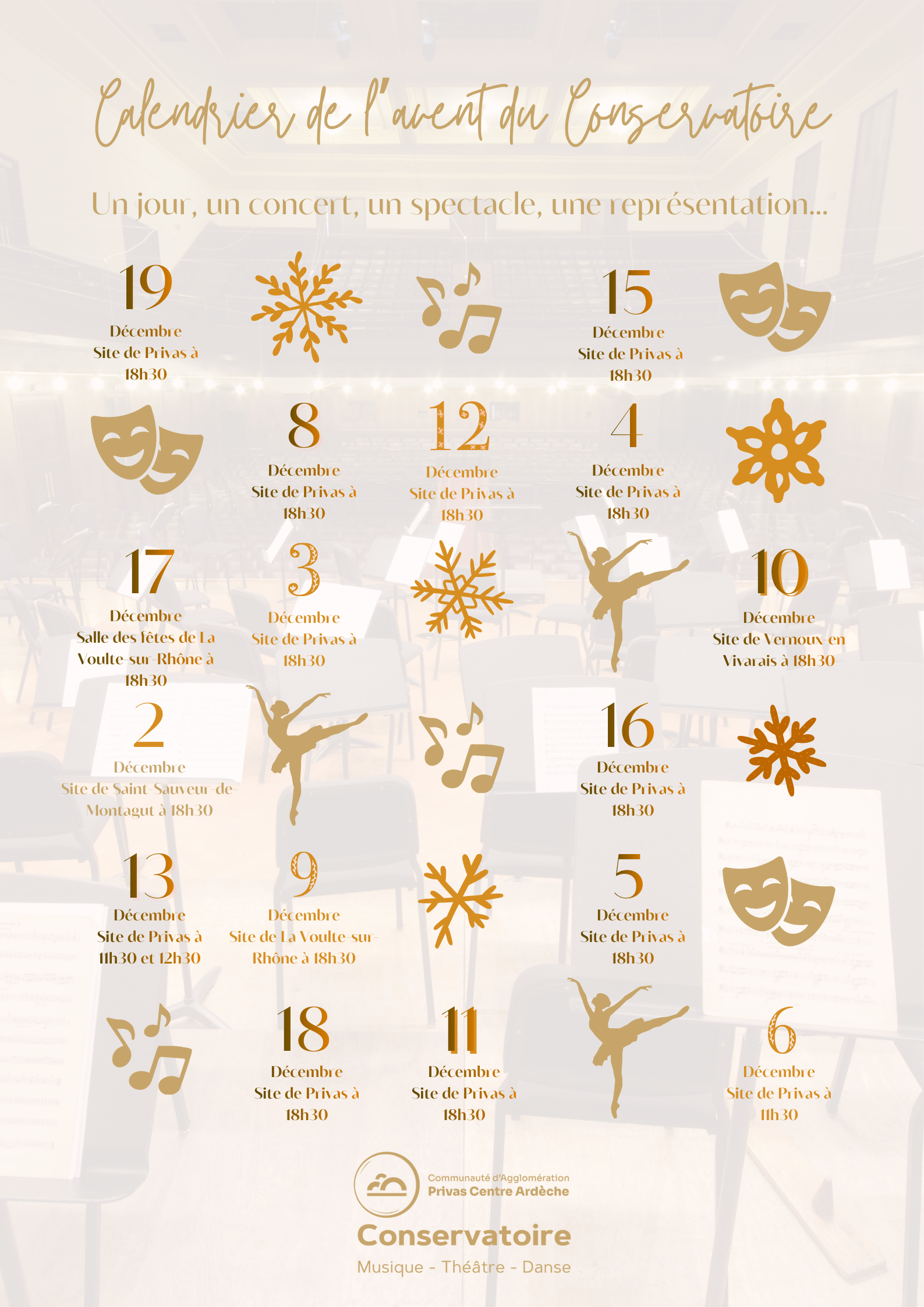 Durant le dernier mois de l’année, le Conservatoire Musique Théâtre Danse de la CAPCA et ses élèves proposent plusieurs concerts et spectacles en accès libre sur le territoire et sous forme d’un calendrier de l’avent.