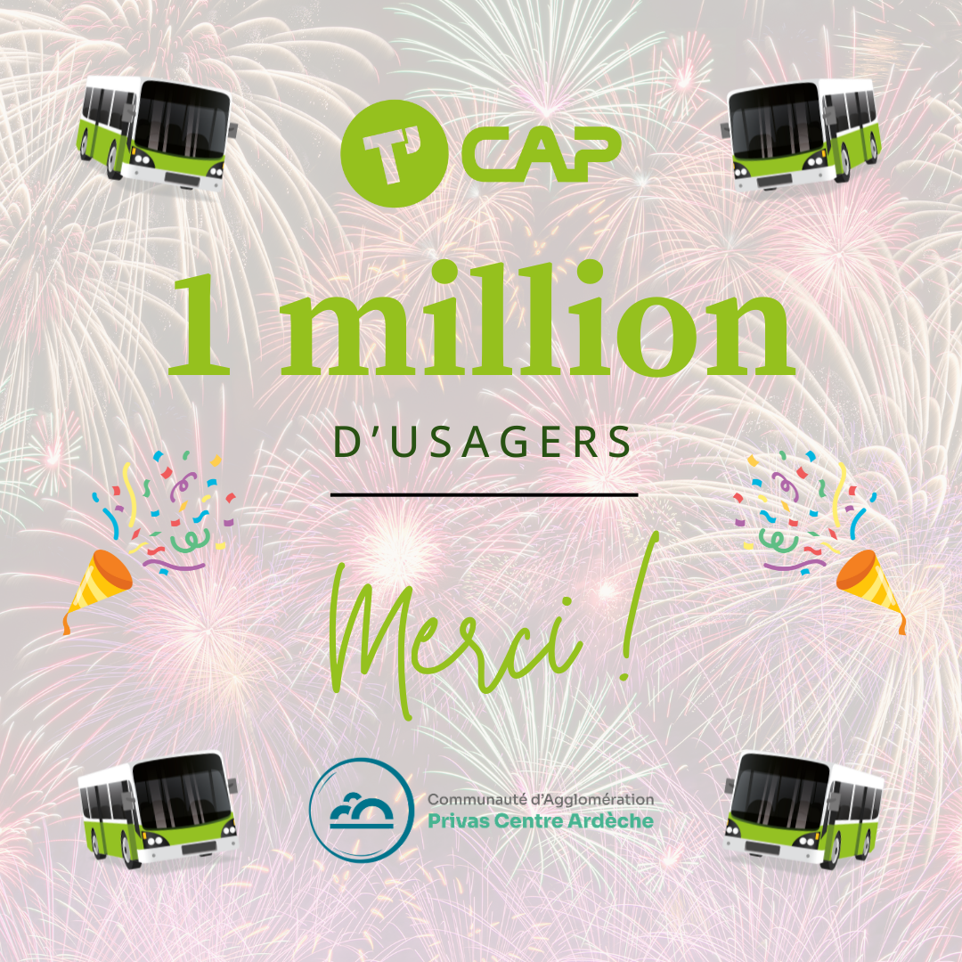 Vous êtes un million de passagers à avoir voyagé avec les bus du réseau T’CAP de l’agglomération depuis son lancement en 2018. Mille mercis pour votre confiance !